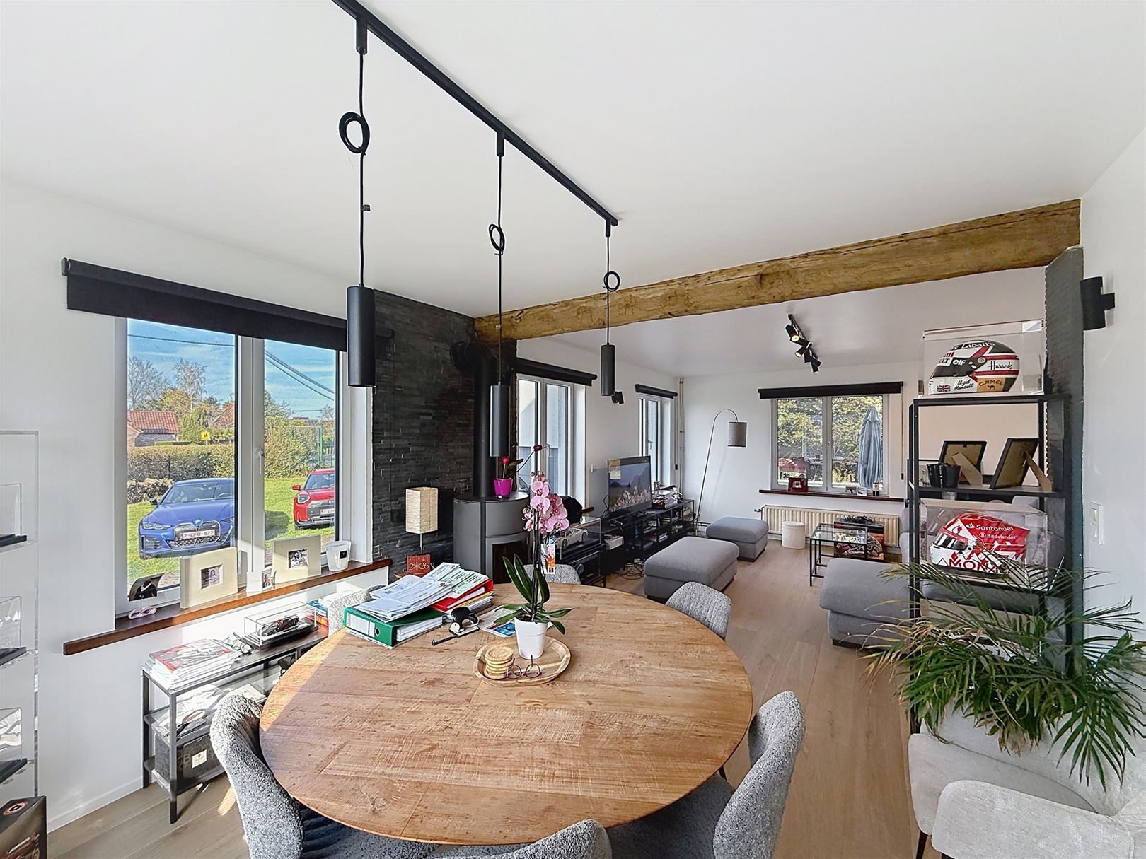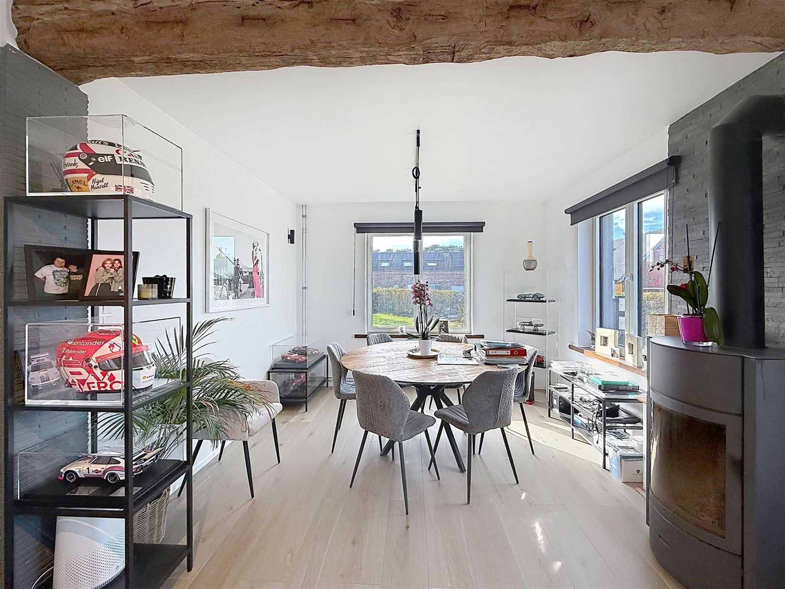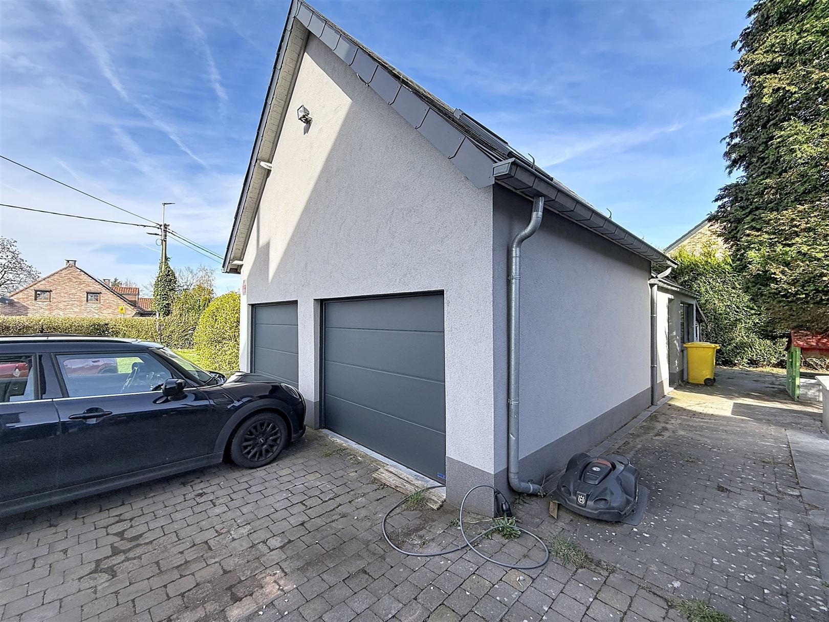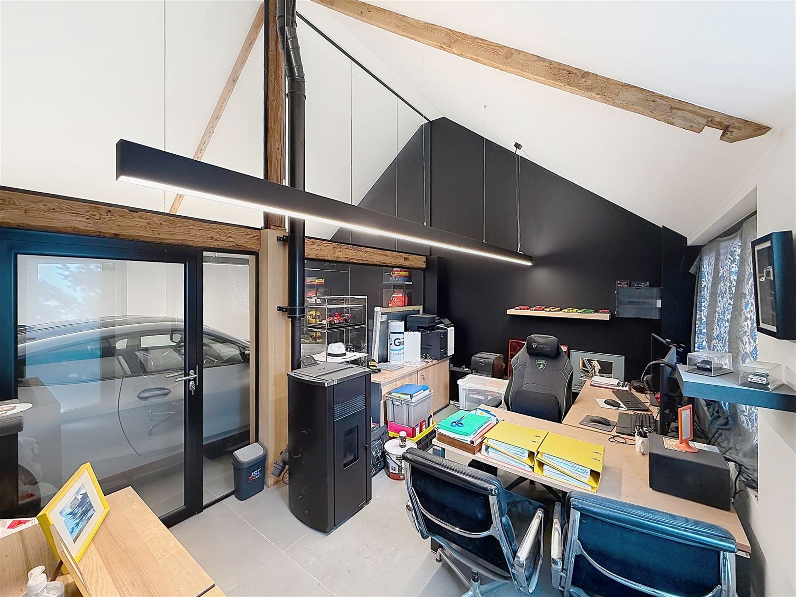 Au rez-de-chaussée, vous découvrirez un vaste séjour lumineux, une cuisine moderne blanche aux équipements actuels et un espace repas convivial. Un studio / bureau aménagé complète agréablement le bien (chambre, living, salle de bain)