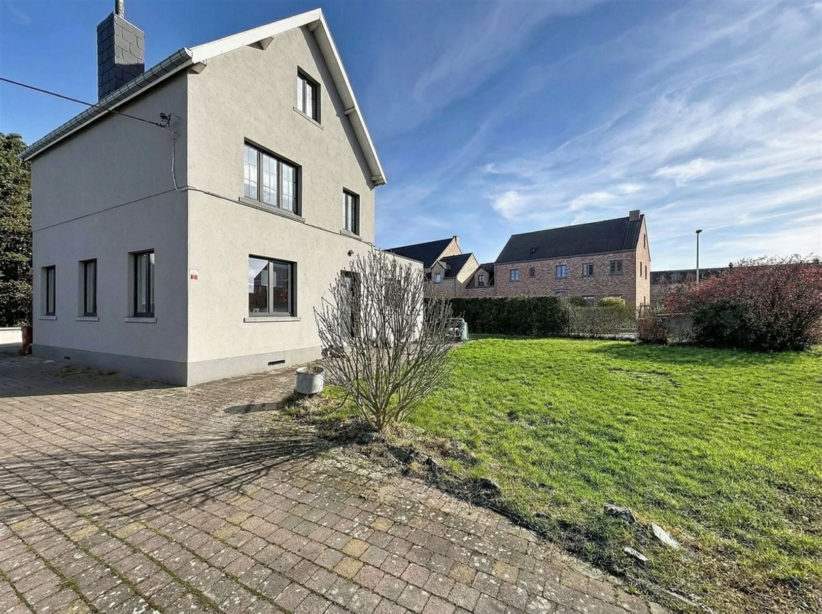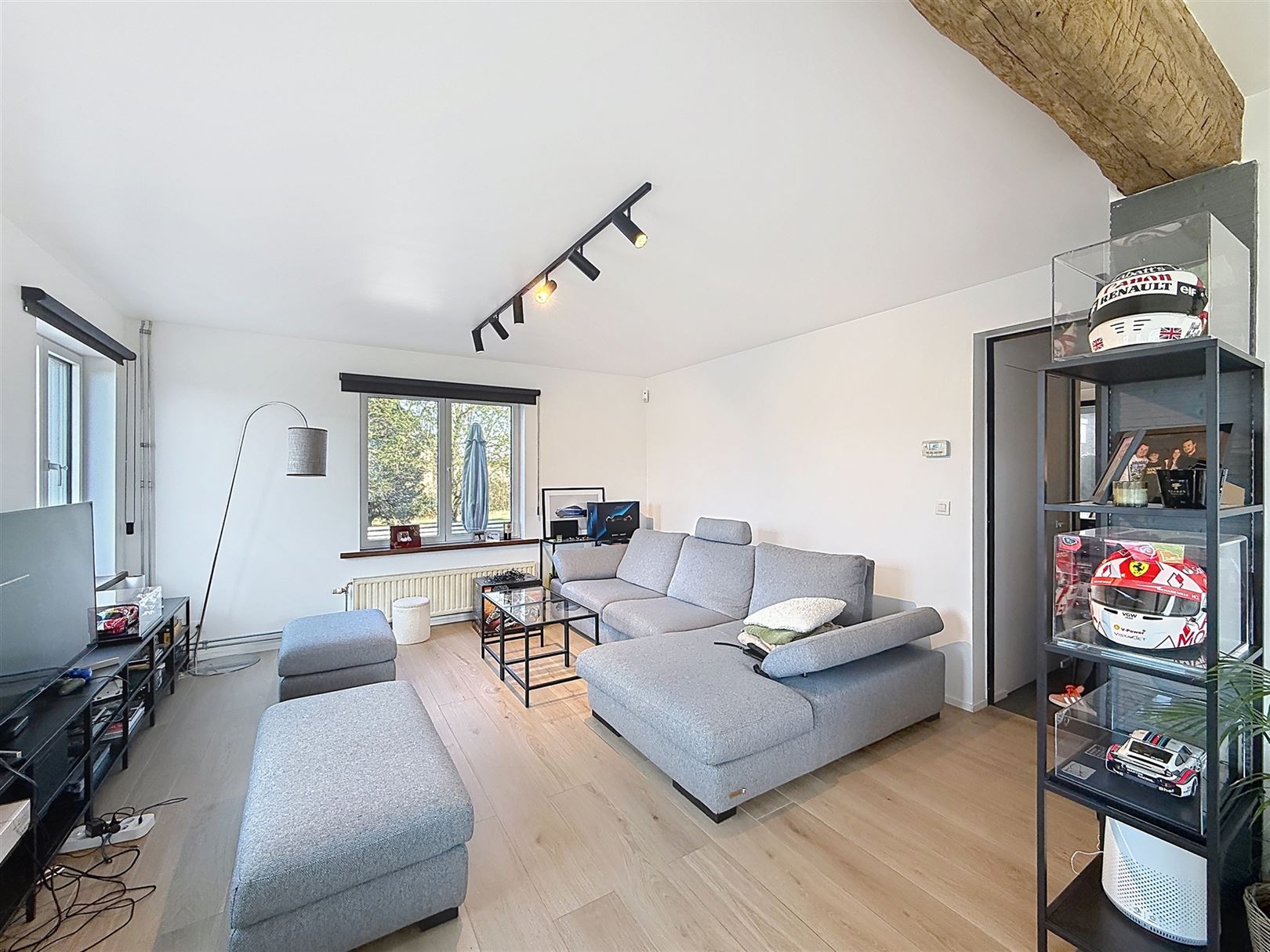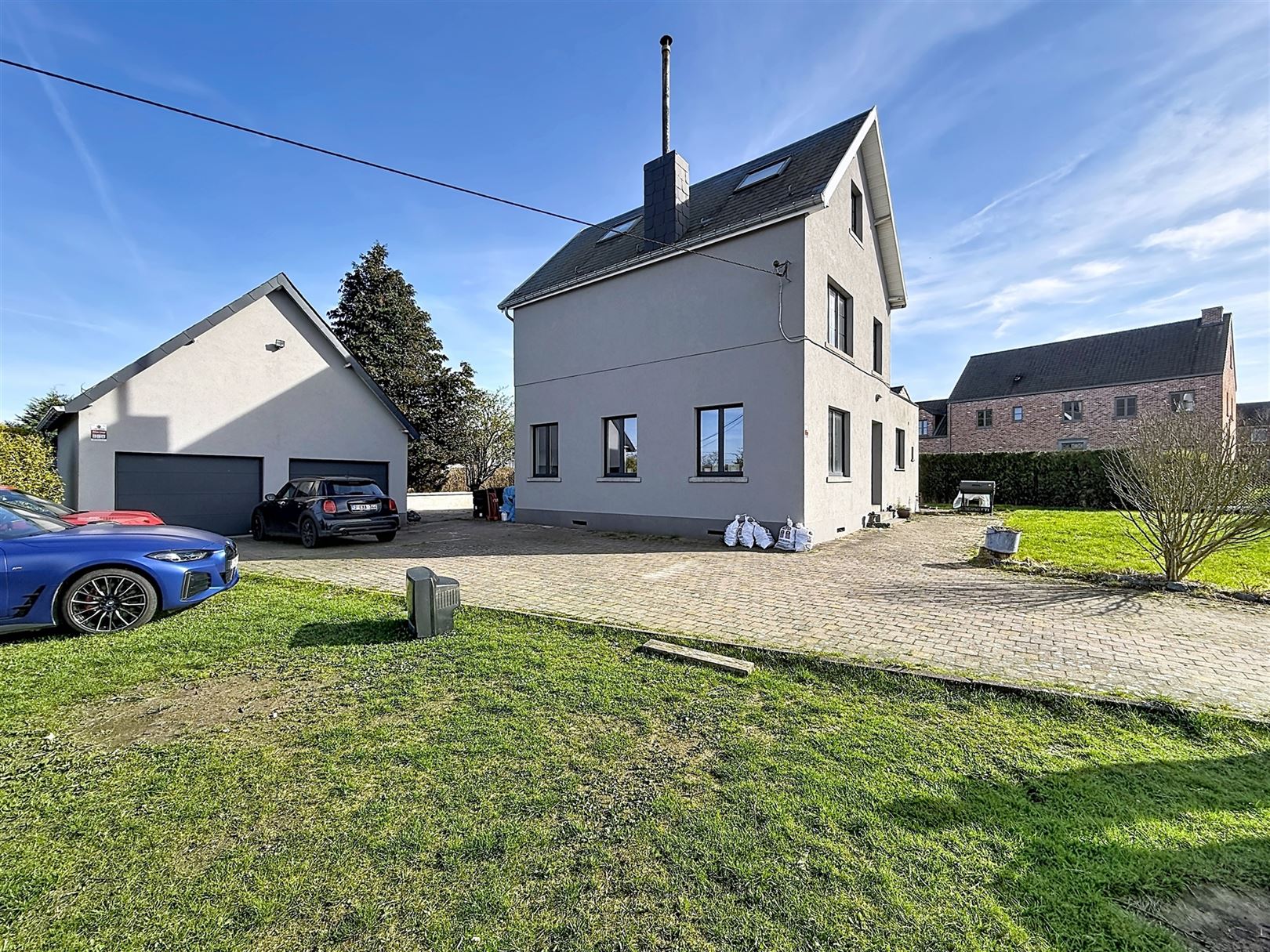 Au rez-de-chaussée, vous découvrirez un vaste séjour lumineux, une cuisine moderne blanche aux équipements actuels et un espace repas convivial. Un studio / bureau aménagé complète agréablement le bien (chambre, living, salle de bain)