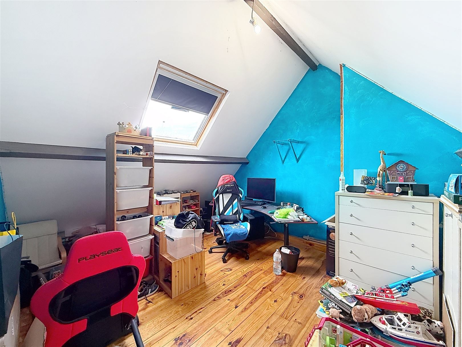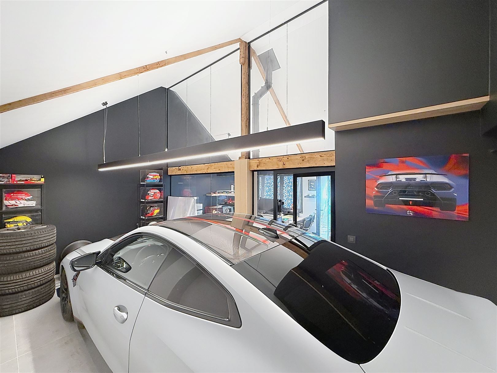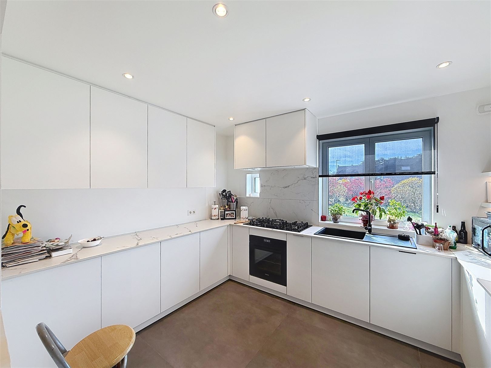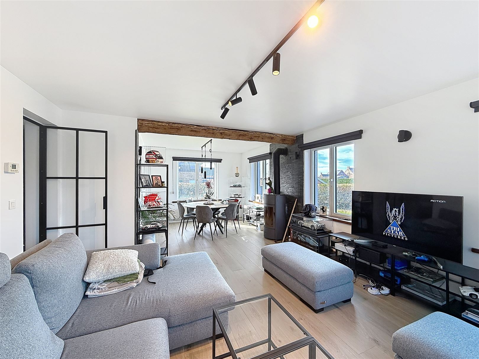 Au rez-de-chaussée, vous découvrirez un vaste séjour lumineux, une cuisine moderne blanche aux équipements actuels et un espace repas convivial. Un studio / bureau aménagé complète agréablement le bien (chambre, living, salle de bain)