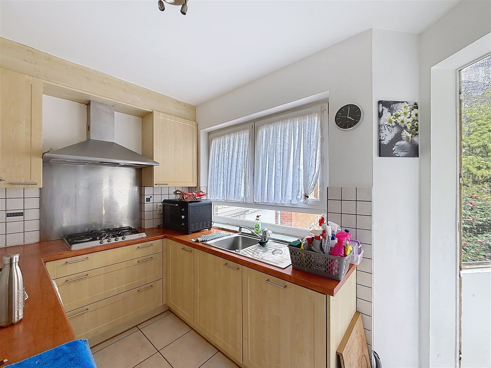 Un accès direct de la cuisine au balcon permet de profiter de l’extérieur et d’apprécier la verdure environnante.