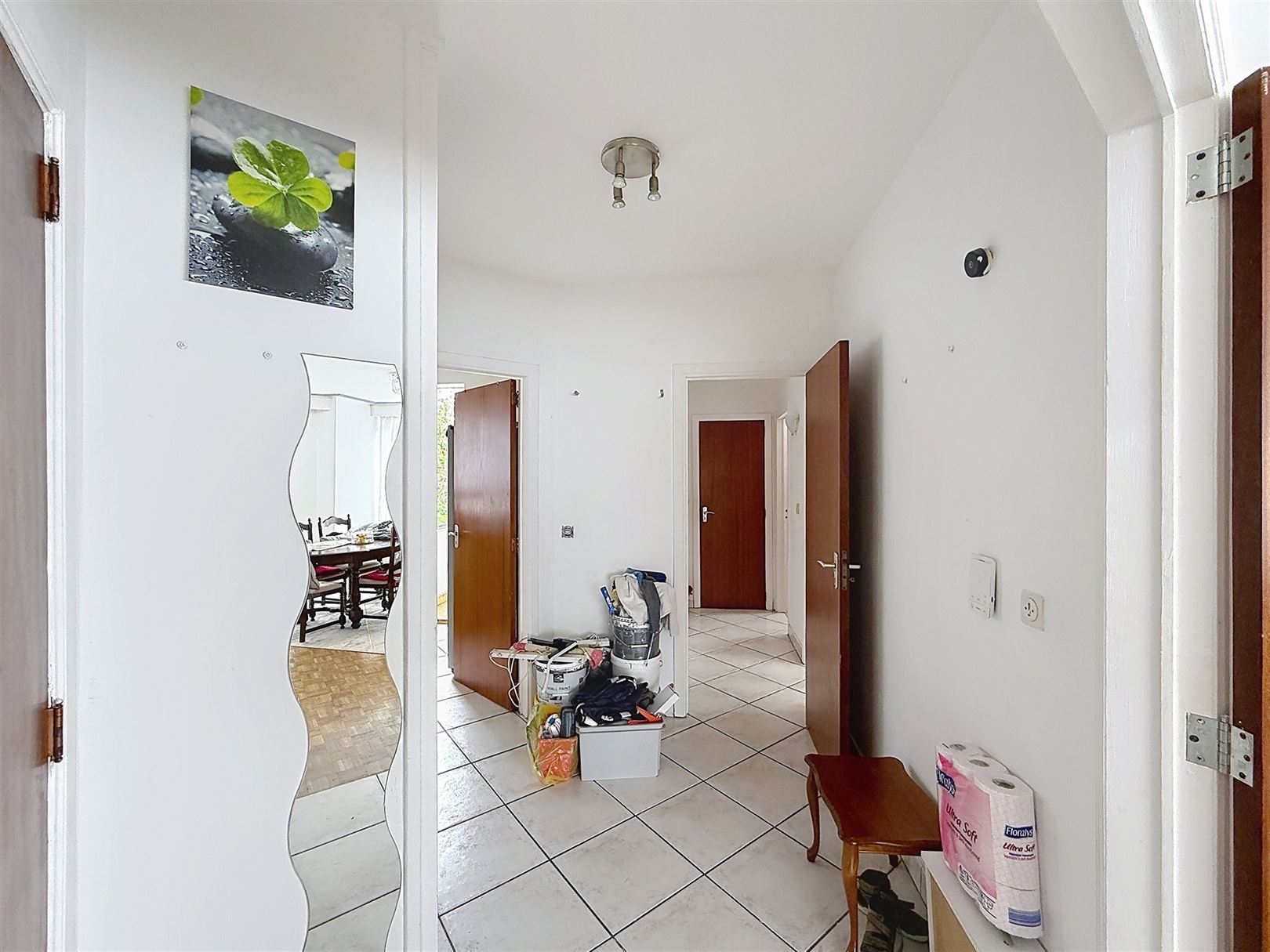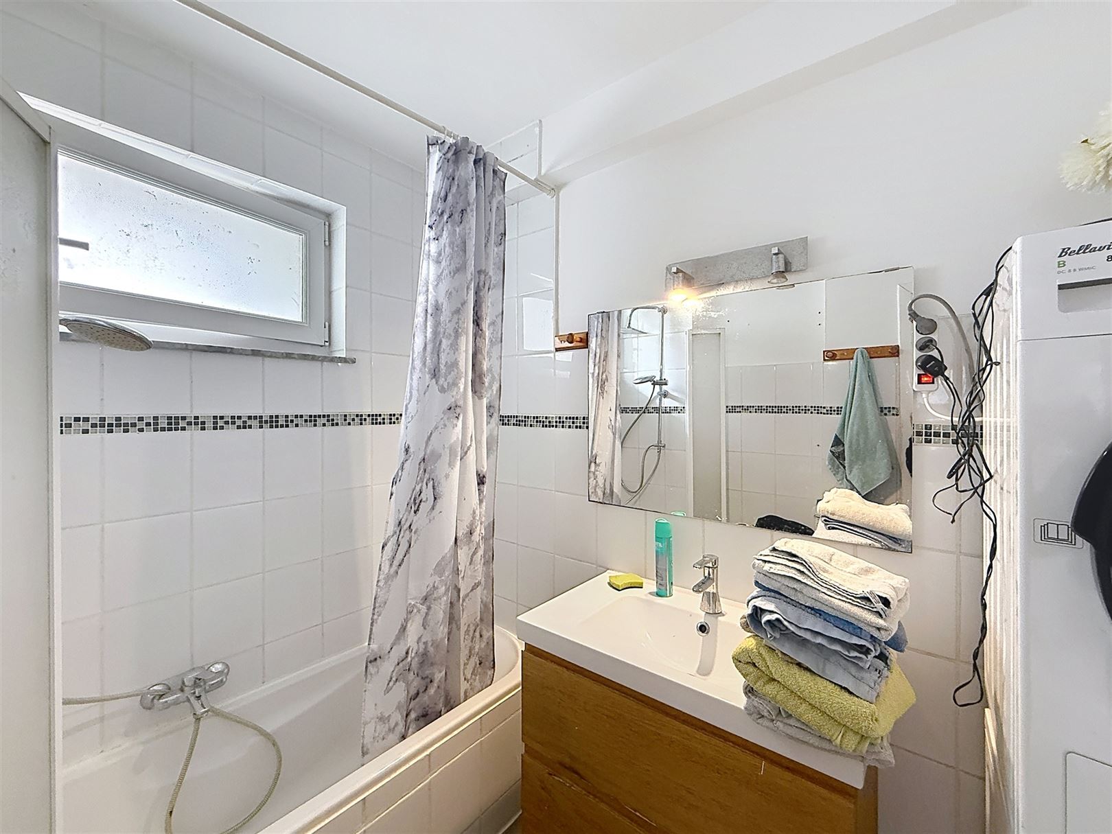 Le logement dispose d’une entrée organisée avec un vaste hall pratique, facilitant la circulation. La salle de bain est fonctionnelle avec baignoire et équipements sanitaires standards, on y retrouve également un espace buanderie.